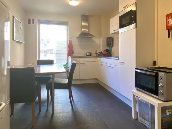 In deze levendige straat vol winkels, horeca en leuke boetiekjes bevindt zich deze nette kamer van ca. 17 m² in een gedeeld complex. Je deelt de keuken, badkamer en het toilet met 5 medebewoners. De sfeer is rustig en gemoedelijk – perfect voor een student of starter. Internet, wasmachine en droger zijn aanwezig.