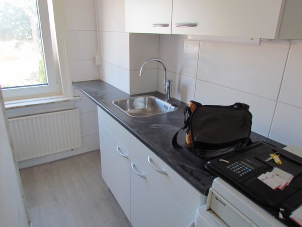 U komt binnen in de keuken. Via de keuken komt u in de badkamer en de hal. Badkamer met een douche en wastafel. De hal, de woonkamer en de slaapkamer zijn voorzien van een gloednieuwe laminaatvloer! De etage is ca. 1 jaar geleden opnieuw wit geschilderd!