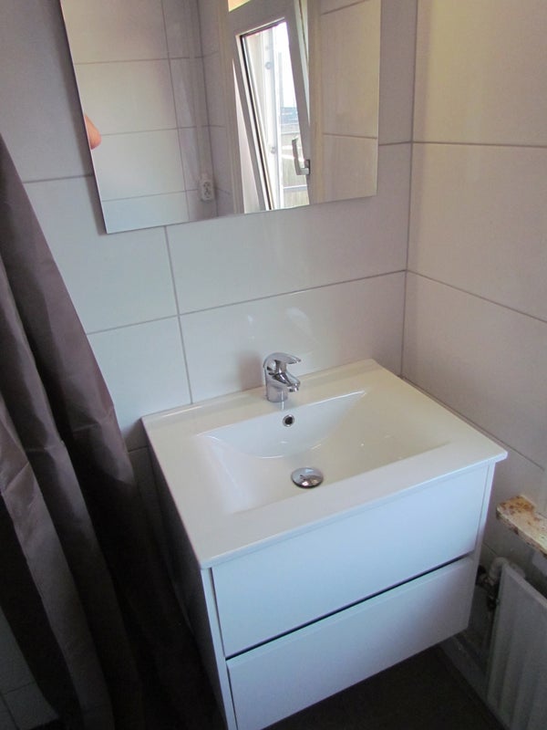 Het toilet op de 1e verdieping wordt gedeeld met slechts 1 werkende, mannelijke bewoner.