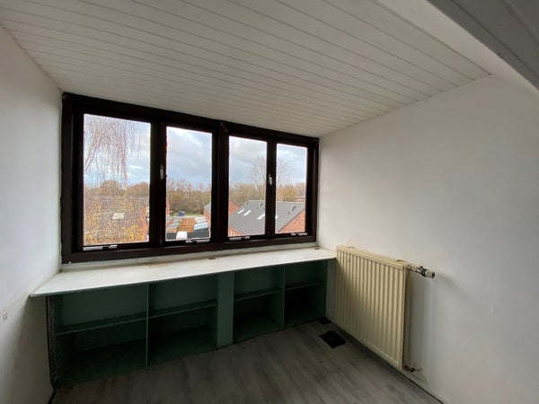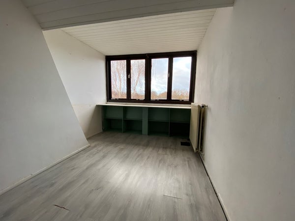 Het huis telt totaal 4 kamers: 1 kamer op de 1e etage, 2 kamers op de 2e etage en 1 kamer op de 3e etage. Deze kamer ligt op de 3e etage (de zolder) van het huis.
