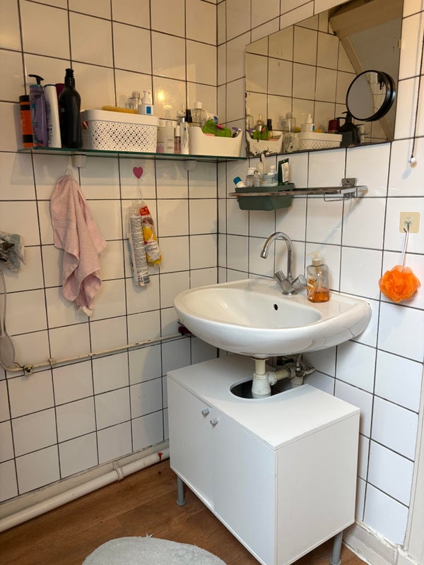 De badkamer wordt gedeeld met 2 andere studentes.