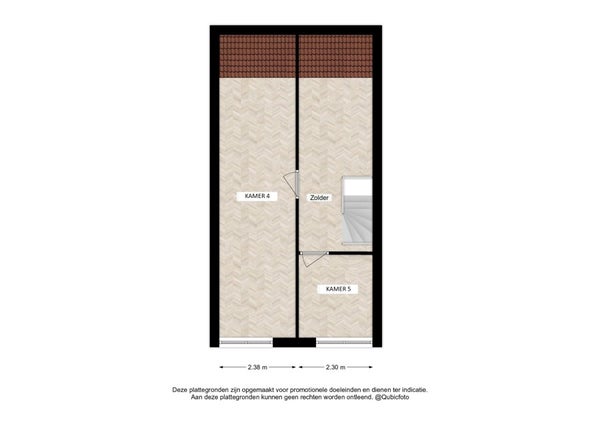 Deze kamer bevindt zich op de tweede etage aan de voorzijde.