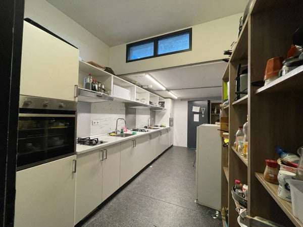 De gezamenlijke ruimtes zoals badkamer, wasruimte , keuken en buitenruimte worden gedeeld met de andere huisgenoten.