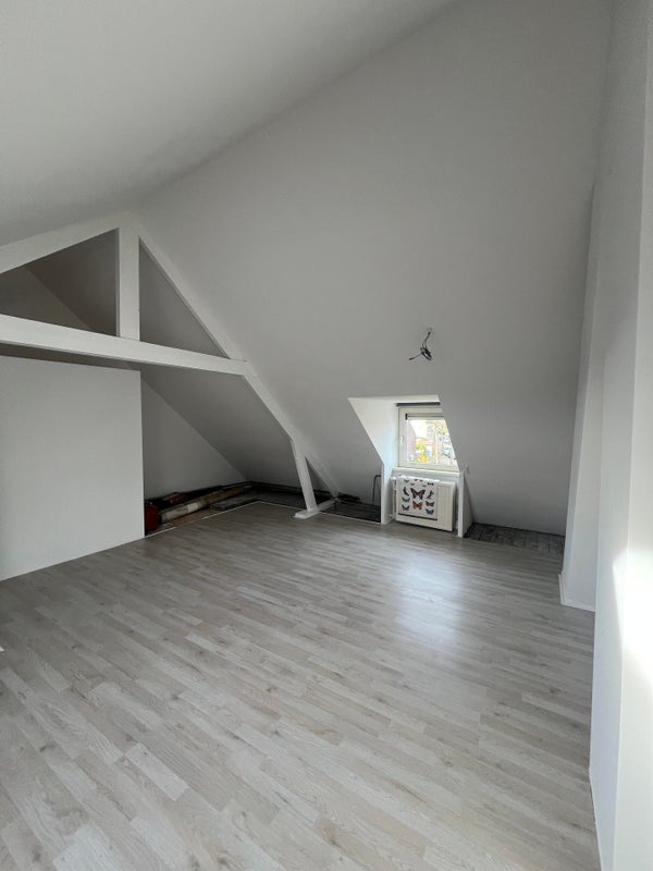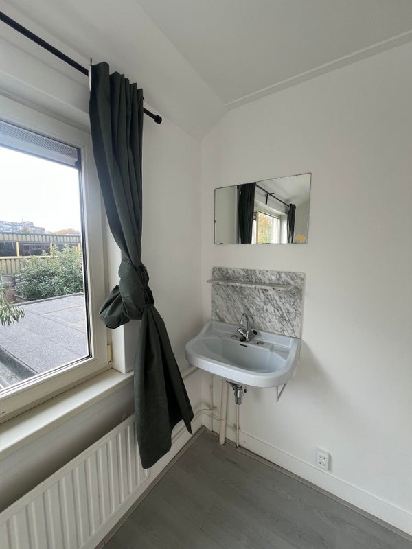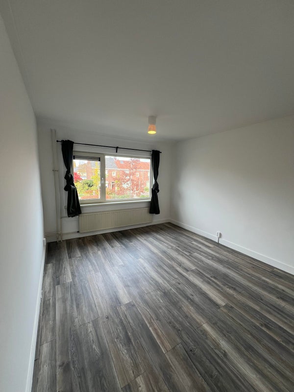 Op de tweede verdieping ligt een zeer ruime studentenkamer met aan twee zijden lichtinval.