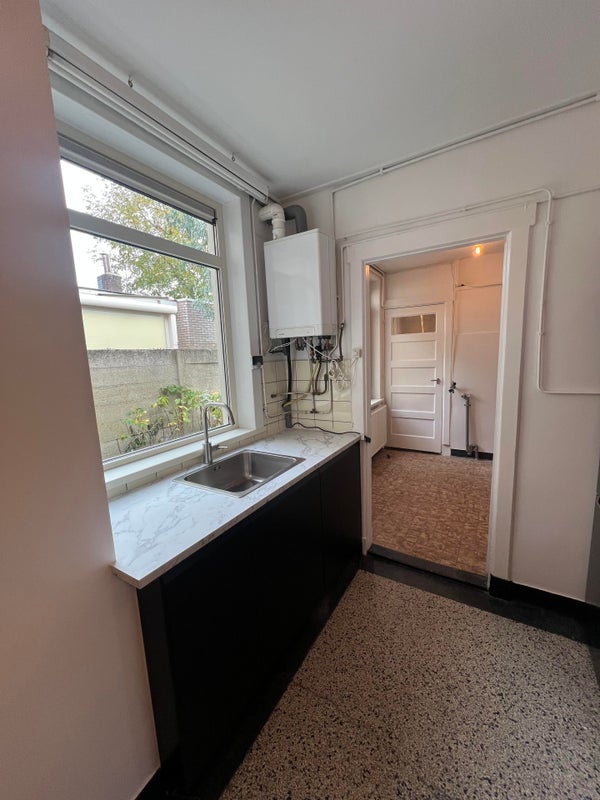 Vanuit de keuken loop je direct naar de achtertuin, ideaal om te ontspannen of te studeren in de buitenlucht.
