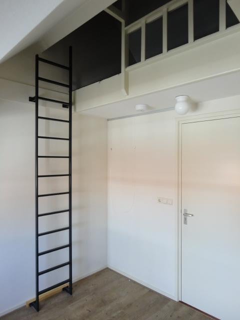 Deze kamer bevindt zich op de tweede etage aan de voorzijde van het pand. De oppervlakte van de kamer bedraagt bijna 11m2 en is voorzien van een eigen keukenblok, spoelbak, ruime opbergruimte en een hoogslapen / vide. Keuken en badkamers (2) worden gedeeld met huisgenoten, evenals het dakterras (12m2).