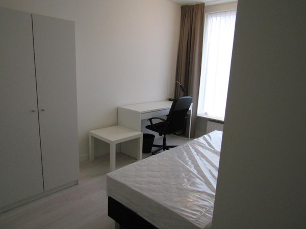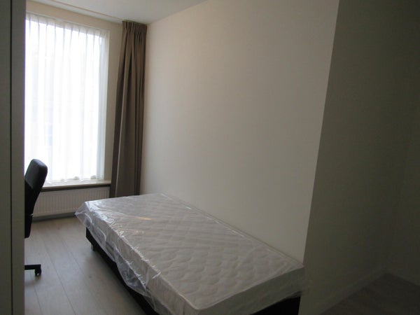 Gemeubileerde studenten kamer, in een huis in Eindhoven met gedeelde faciliteiten. De kamer is gelegen op de begane grond aan de voorzijde van de woning en beschikt over een eigen wasbak en balkon.