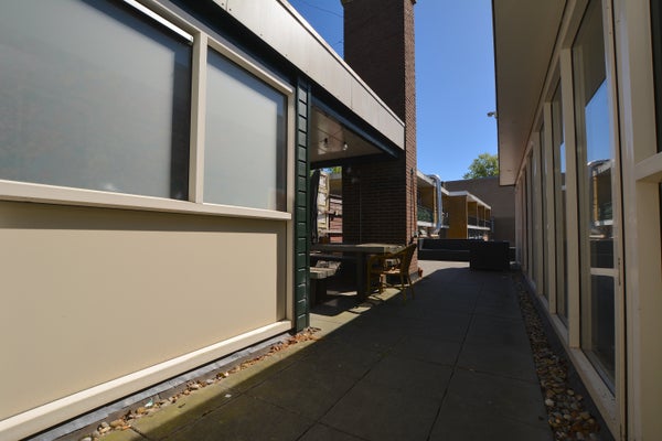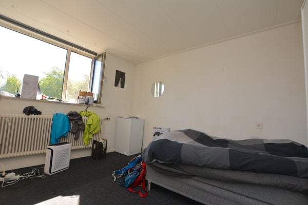 De kamer heeft voldoende plek voor een twee persoons bed, bureau en een kledingkast. Het huis wordt gedeeld met 6 medebewoners. Je deelt hiermee de grote woonkamer van 43m2, de keuken wat beschikt over een vaatwasser, oven, wasbak met kraan, gasfornuis en erg veel werkruimte om je gerechten klaar te maken. Er zijn twee gezamenlijke badkamers aanwezig. Zo beschikt het huis nog over een groot dakterras en een balkon recht tegen over je kamer.