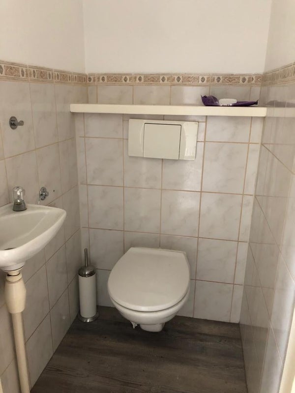 De gemeenschappelijke badkamer is voorzien van een douchecabine, wastafel met wastafel, spiegel met verlichting en toilet. Op de begane grond bevindt zich nog een apart toilet met fonteintje.