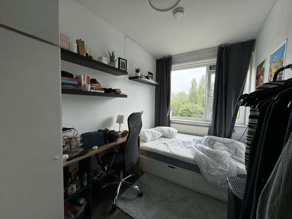kamer 2 is gelegen op de derde verdieping aan de achterzijde van het pand en heeft een oppervlakte van 9,49 m². Er is voldoende ruimte voor een bed, een bureau, een kledingkast en eventueel een kleine zithoek. Kamer 3 is gelegen op de derde verdieping aan de achterzijde van het pand en heeft een oppervlakte van circa 8,43m². De badkamer bevindt zich ook op de derde etage en wordt gedeeld met 2 medebewoners. De gedeelde keuken is ruim en voorzien van alle noodzakelijke gemakken zoals een vaatwasser, koelkast, combinatie oven-magnetron en inductiekookplaat. Tot slot is er een ruime gemeenschappelijke woonkamer aanwezig van 21,77 m².