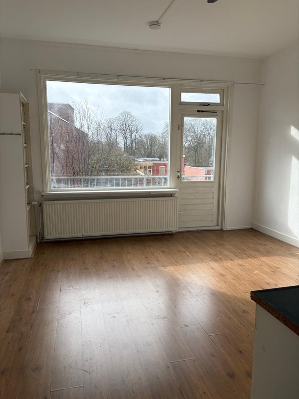 Gestoffeerde studio (onzelfstandige woonruimte) gelegen op de tweede verdieping met een eigen keukenblok/ douche en balkon, gelegen op loop-/ fietsafstand van het centrum en het Noorderplantsoen.