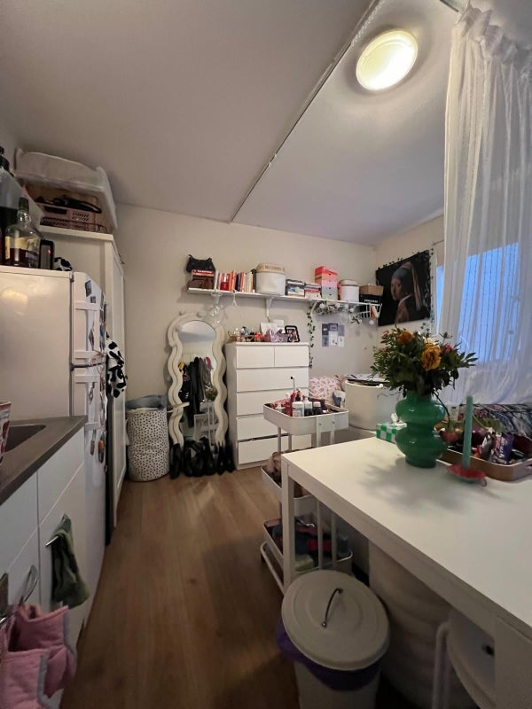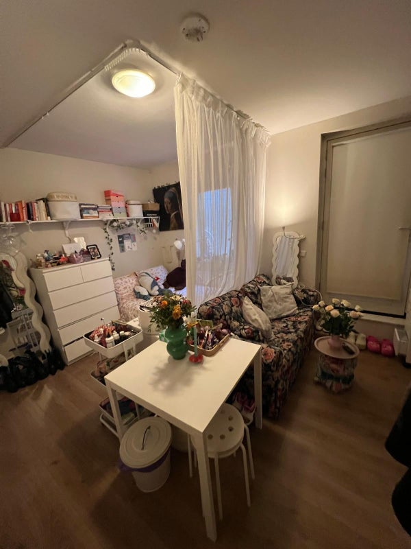 De kamer beschikt over een eigen keuken en ook een eigen balkon. De badkamer en het toilet worden gedeeld met 3 huisgenoten.