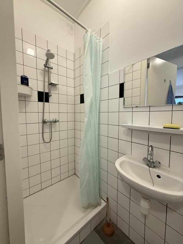 De badkamer is netjes afgewerkt en uitgerust met een douche, wastafel met spiegel en toilet. De woning maakt een frisse en goed onderhouden indruk.
