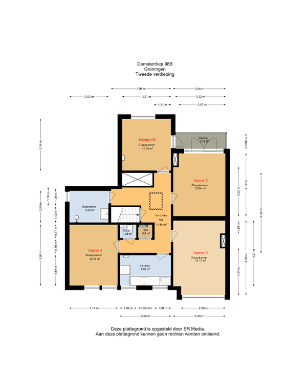 kamer 2 is gelegen op de eerste verdieping aan de achterzijde van het pand en heeft een oppervlakte van circa 13,84 m². Er is voldoende ruimte voor een tweepersoonsbed, een bureau, een kledingkast en eventueel een kleine zithoek. Kamer 4 is gelegen op de eerste verdieping aan de voorzijde van het pand en heeft een oppervlakte van circa 12,53m². De badkamer bevindt zich op de eerste etage en wordt gedeeld met vier medebewoners. De gedeelde keuken is ruim en voorzien van alle noodzakelijke gemakken zoals een vaatwasser, koelkast, combinatie oven-magnetron en inductiekookplaat.