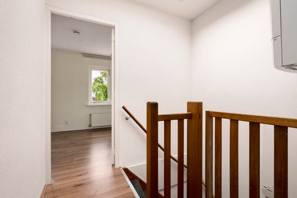 Op de begane grond bevinden zich daarnaast de gezamenlijke keuken en bijkeuken met wasmachine, evenals de voortuin en de hal met trapkast en meterkast.