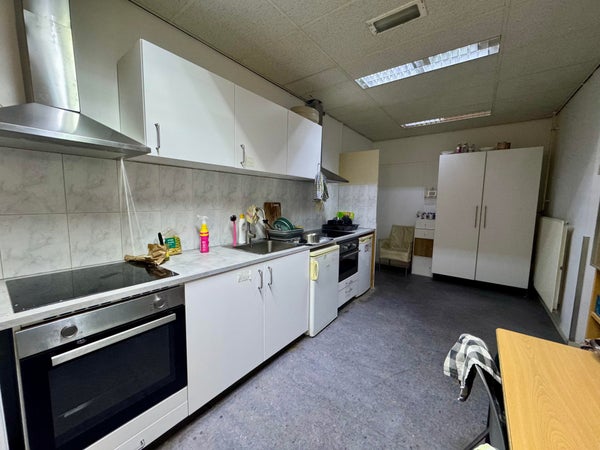 In een grootschalige studentenwoning in Heerlen is deze kamer beschikbaar. De woning bestaat uit 25 kamers en beschikt over 3 ruime gemeenschappelijke keukens, voldoende douches en toiletten en een gezamenlijke woonkamer en buitenruimte.