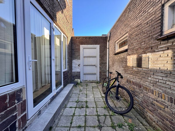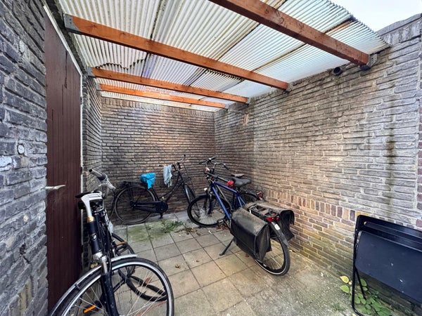 Op de begane grond bevinden zich 2 kamers. Keuken voorzien van koelkast, vriezer, kookplaat en wasmachine. Tevens is er via de keuken toegang tot de tuin, waar ook de mogelijkheid is om de fiets te stallen. De tuin heeft ook een aparte ingang via de zijstraat. Tevens bevind zich op de begane grond een douche en toilet.