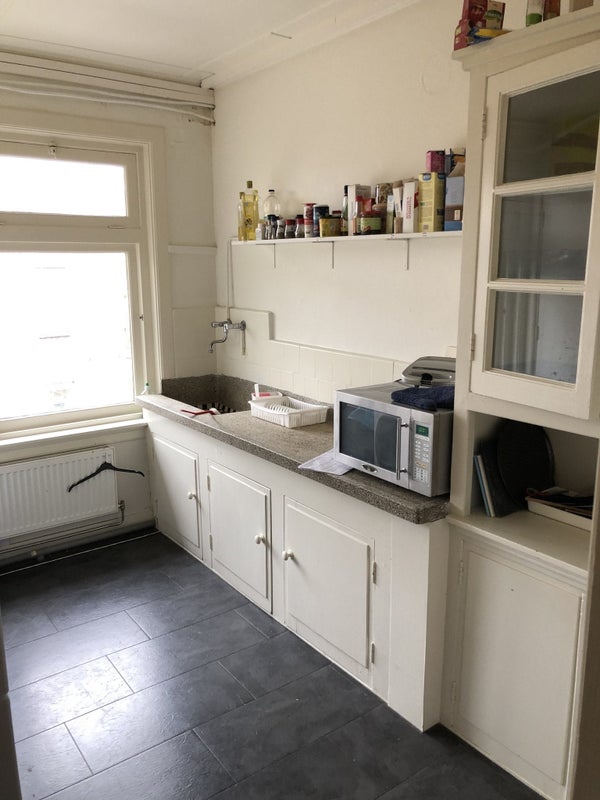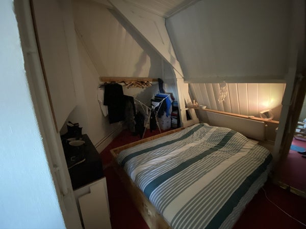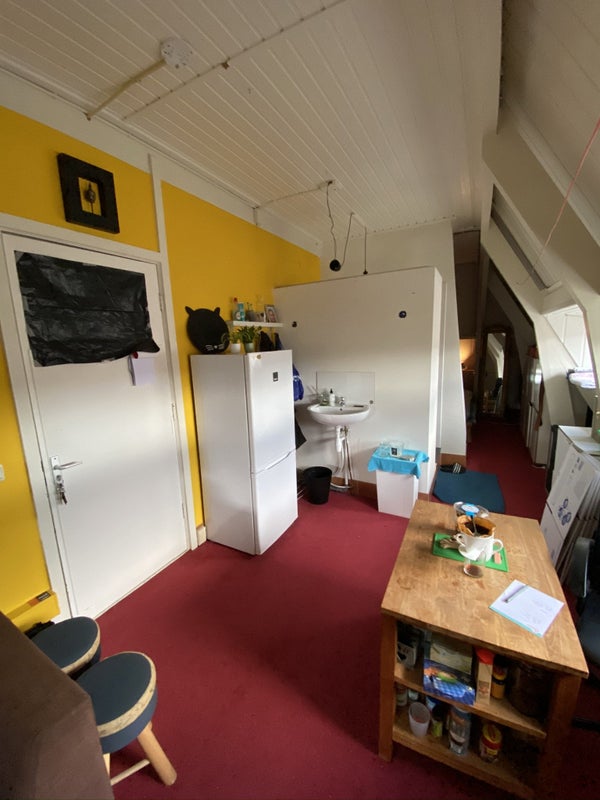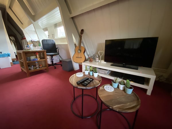 Erg ruime kamer met eigen douche/ wasbak van rond de 25 m2 in een studentenhuis is binnenkort beschikbaar. De keuken deel je met je huisgenoten.