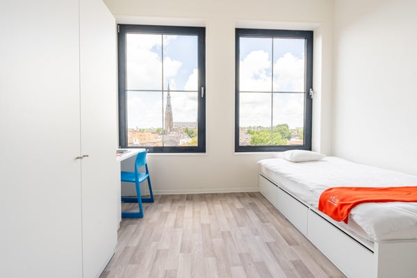 Dit klassieke kantoorpand, midden in het centrum van Leeuwarden, is omgetoverd tot een moderne studentenaccommodatie met karakteristieke uitstraling. Je studentenjaren doorbrengen in één van onze gloednieuwe studio’s, dat kan! Onze huurcontracten zijn steeds voor onbepaalde tijd, zo moet je je gedurende je gehele studententijd geen zorgen maken over je accommodatie.