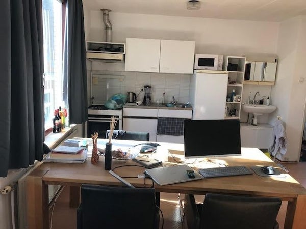 Op een toplocatie in hartje centrum is een kamer op de eerste etage, met eigen keuken en gedeelde douche-toilet met 3 personen.En u kunt gebruik maken van een gedeeld dakterras. Fietsenberging is aanwezig.