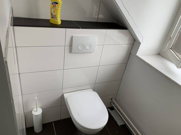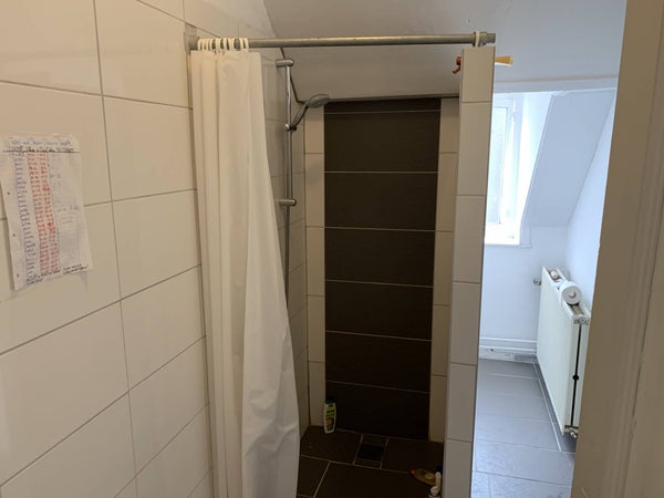 Er zijn 3 douches en 3 toiletten waar iedereen gebruik van kan maken.