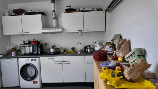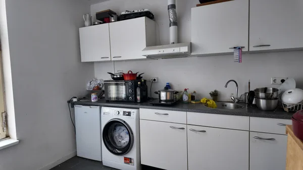 Ruime kamer met eigen keukenblok gelegen op de eerste etage in een karakteristiek studentenhuis. Douche en toilet worden gedeeld met andere studenten. Er is tevens een gemeenschappelijke fietsenberging aanwezig. Huur is inclusief lease wasmachine.