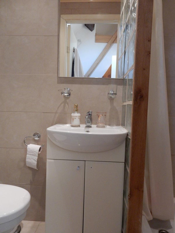 Toegang tot de studio met woon-/slaapkamer, keukenblok met afzuigkap, spoelbak, 2-pits elektrische kookplaat en koelkast. De badkamer voor eigen gebruik is gelegen op overloop met douche, wastafel en toilet. Fraai uitzicht over stadscentrum vanuit studio.