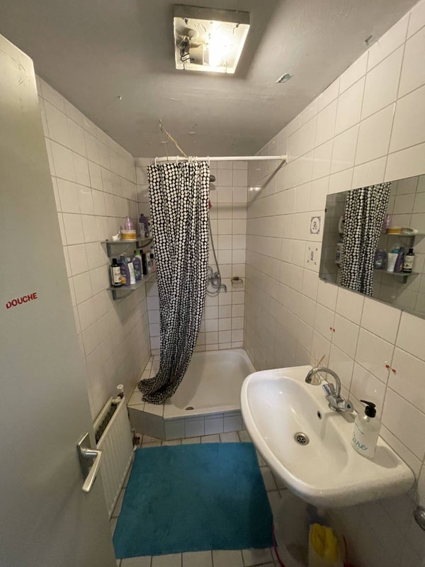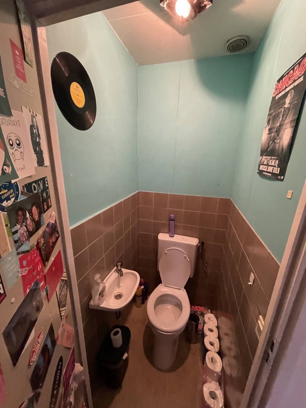 De bewoners delen met zijn drieën de badkamer en toilet.