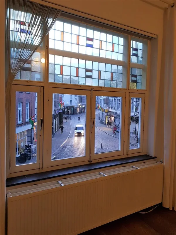 Leuke kamer in een monumentaal pand hartje centrum Maastricht op 120m van het Vrijthof. De kamer is gelegen op de eerste verdieping met een laminaatvloer en authentieke glas in lood ramen. De woonkeuken, separaat toilet en badkamer met douche en wastafel worden gedeeld met drie andere studenten.