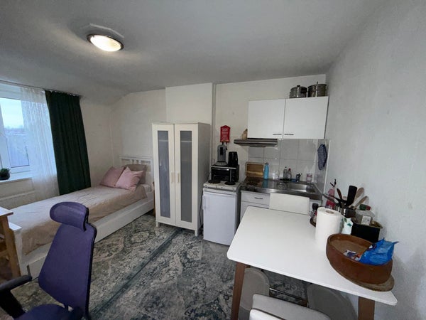 Deze gemeubileerde studentenkamer van 20m² bevindt zich aan de Bergerstraat 93. De kamer is voorzien van een eigen keuken en badkamer. De badkamer is voorzien van wastafel, douche en toilet.