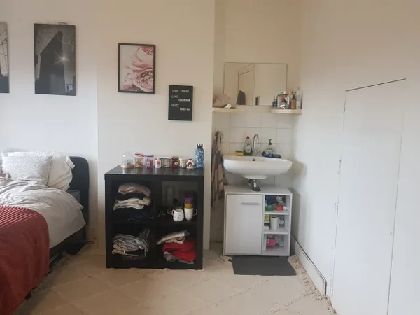 Kamer met wastafel op de 2de etage in een gezellig studentenhuis. Keuken, douche en toilet worden gedeeld met andere studenten. Er is tevens een grote gemeenschappelijke tuin met fietsenberging en kelder aanwezig.