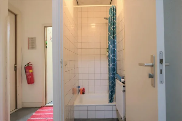 Kamer met eigen wastafel gelegen op de begane grond in een studentenhuis. Keuken en badkamer worden gedeeld met andere studenten. Er is tevens een gemeenschappelijke buitenruimte en fietsenberging aanwezig.
