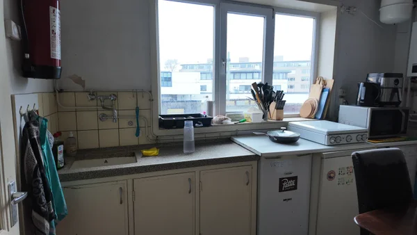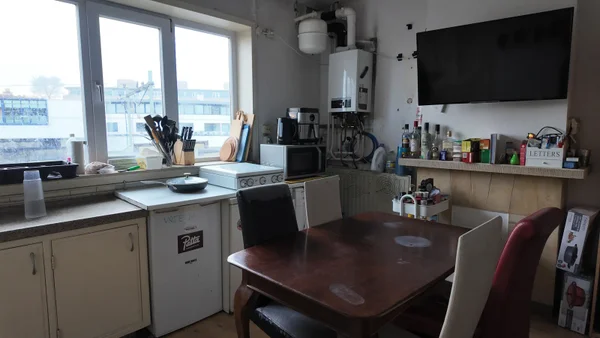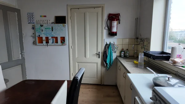 Kamer 1 op eerste etage voor. De woning heeft op de eerste etage een woonkeuken, badkamer met douche en wastafel en separaat toilet. Keuken en badkamer wordt met 2 andere huisgenoten gedeeld.