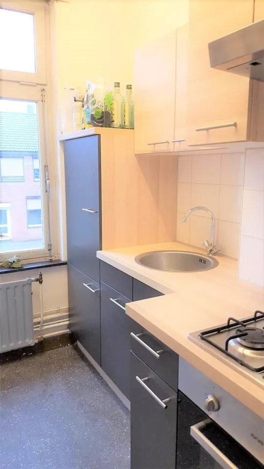 Kamer met eigen wastafel en laminaatvloer op de derde etage in een studentenhuis. Keuken, douche en toilet worden gedeeld met 3 andere studenten. Er is tevens een fietsenberging aanwezig. Huur inclusief lease wasmachine.