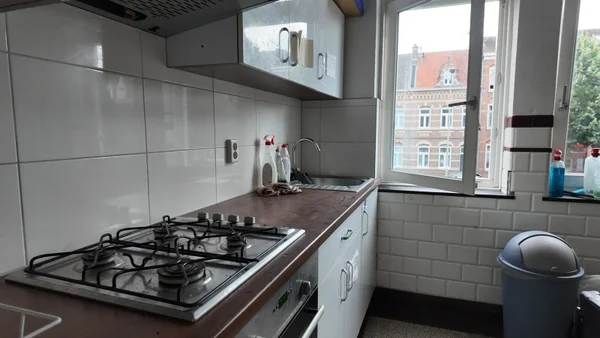 Kamer met eigen wastafel gelegen op de derde etage in een studentenhuis. Keuken, douche en toilet worden gedeeld met andere studenten en er is een gemeenschappelijke fietsenberging aanwezig. Huur is inclusief lease wasmachine.