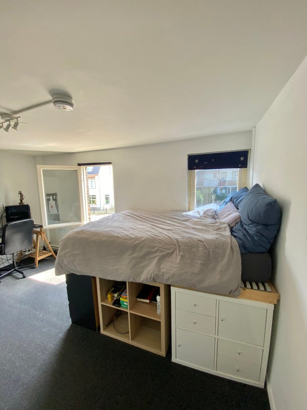De kamer beschikt over een eigen kitchenette met koelkast, 2 pits fornuis en magnetron. De nette badkamer is direct naast deze kamer gelegen en dient gedeeld te worden met 1 medebewoner.