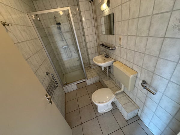 Studio met eigen badkamer (v.v. douche, toilet en vaste wastafel) en gemeenschappelijk gebruik van keuken, buitenruimte en fietsenstalling.