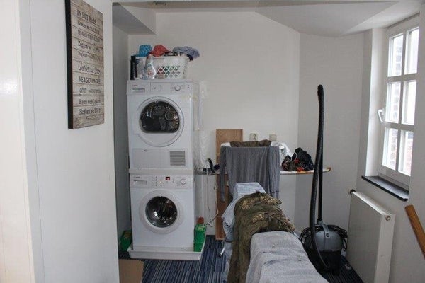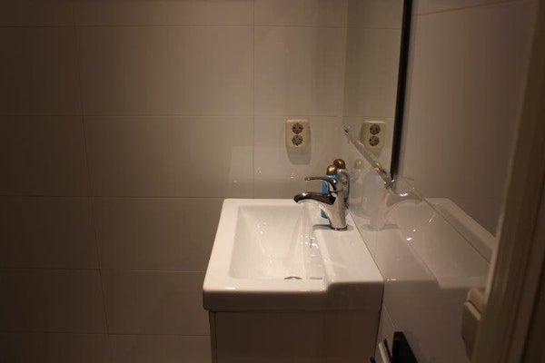 Verder een zitje, werktafel, TV en een tweepersoonsbed. De badkamer en wc moeten gedeeld worden met 3 andere bewoners. ook is er een wasmachine en wasdroger voor gezamelijk gebruik.