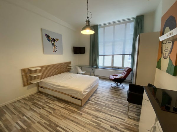 Gemeubileerde kamer op de 1ste verdieping. De kamer heeft een keukenblok voorzien van een 3 pits kooktoestel, afzuigkap, magnetron en ijskast.