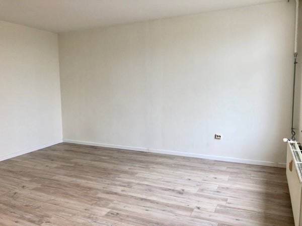 Gezamenlijke entree met toegang tot de kamer, gelegen op de tweede verdieping. De kamer heeft veel lichtinval en is voorzien van een mooie, nieuwe laminaatvloer.