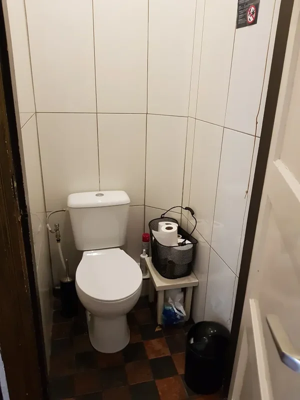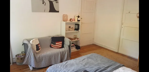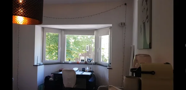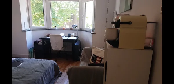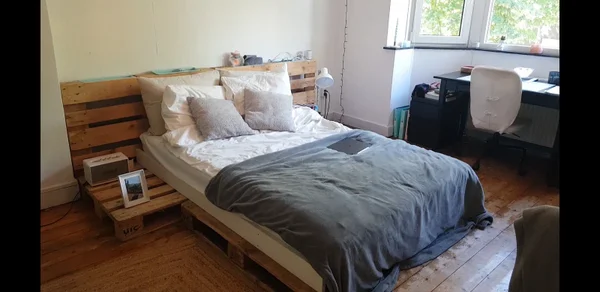 Kamer gelegen op tweede etage voor in een studentenhuis met gemeenschappelijke keuken, toilet en badkamer met douche en wastafel.