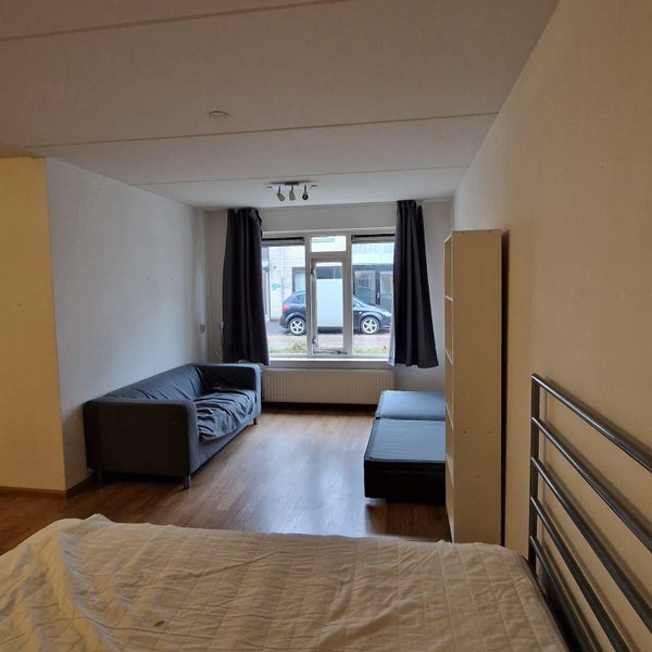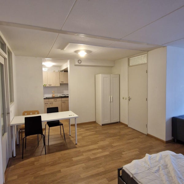 De grootste kamer in het huis: 33m2 met privékeuken, eettafel + stoelen, bed+mattres, bank, 2 kasten, kledingkast, stoffering.