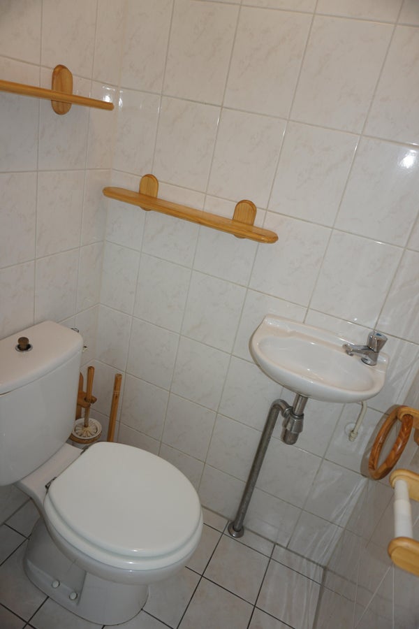- Toiletruimte 1.20 x 0.90 met een duoblok en lichte betegeling.