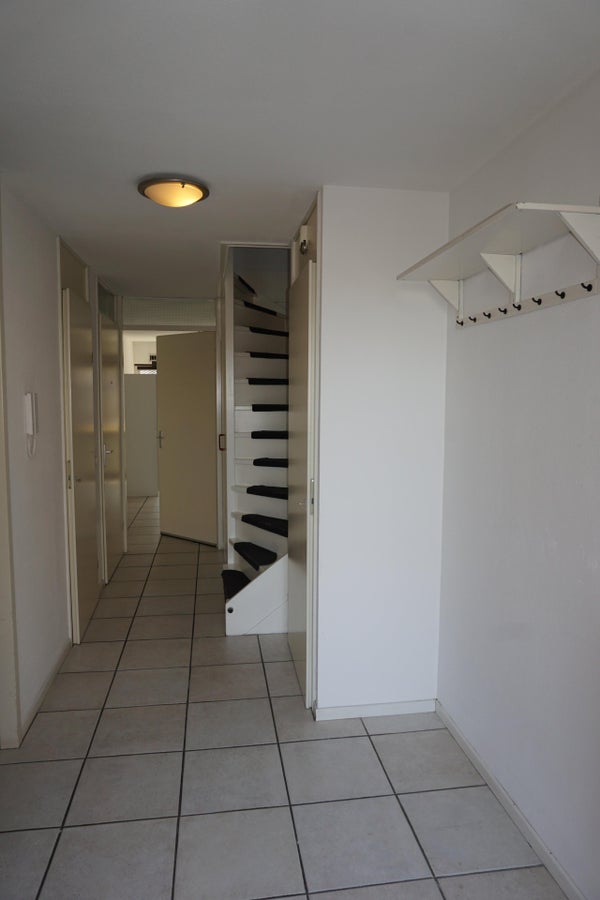 - Hal met meterkast, kast met wasmachineaansluiting en de trapkast.