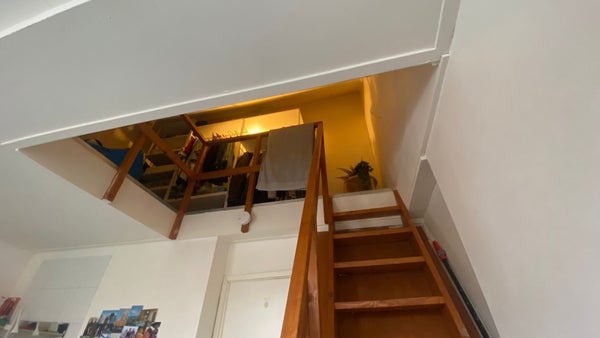 Deze kamer is ongeveer 14 m2 en geniet veel lichtinval middels de grote raampartij. De kamer heeft een aparte vide welke je middels een vaste trap bereikt. Handig voor bijvoorbeeld opslag en kasten te plaatsen maar er zou door middel van een eenpersoonsbed ook een slaapgedeelte kunnen worden gerealiseerd.