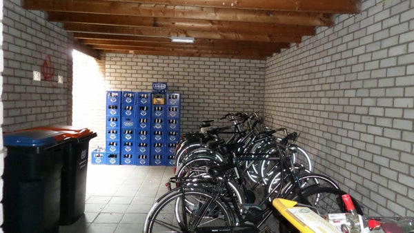Ook is er een ruime (ca 24m2) gezamenlijk woonkamer met keuken. Een wasruimte met wasmachine en vaatwasser. En een gedeeltelijk overdekte achterplaats voor de fietsen en containers behoren bij het gehuurde.