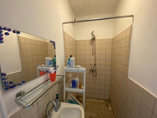 Er is een badkamer en een apart toilet voorzien en ook een keuken, allemaal gedeeld met de andere bewoners.