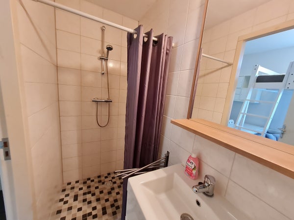 De semi-studio heeft een eigen badkamer met douche, toilet en wastafel.