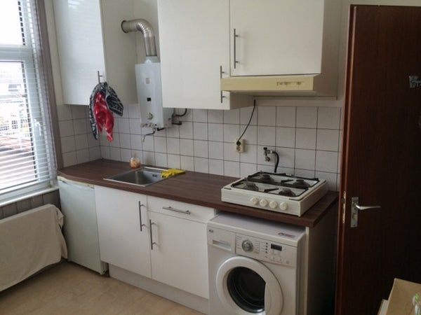Deze kamer is 18 m2 groot en beschikt over een eigen wastafel. Tevens is deze kamer voorzien van lichtinval en is gestoffeerd. Badkamer en keuken zijn gedeeld met twee medebewoners. Deze kamer is voorzien van een koelkast en wasmachine waar u gebruik van kunt maken. Huur