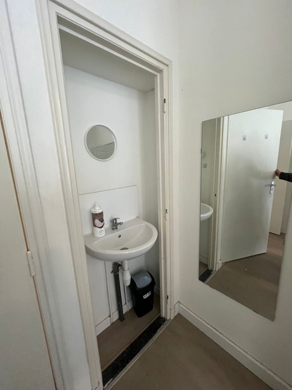 De gezamenlijke keuken is gelegen op de bovenste verdieping van de woning en wordt gedeeld met 3 andere bewoners. De badkamers welke zijn gelegen op de eerste en tweede verdieping beschikken over een douche en wastafel met spiegel. Deze worden regelmatig schoongehouden door een schoonmaakster.